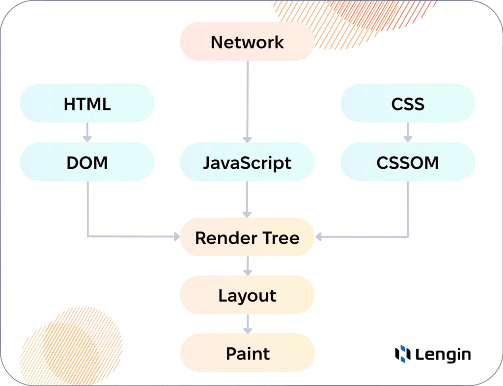- Painting: The browser uses the rendered elements to paint every pixel of the final image on the screen.