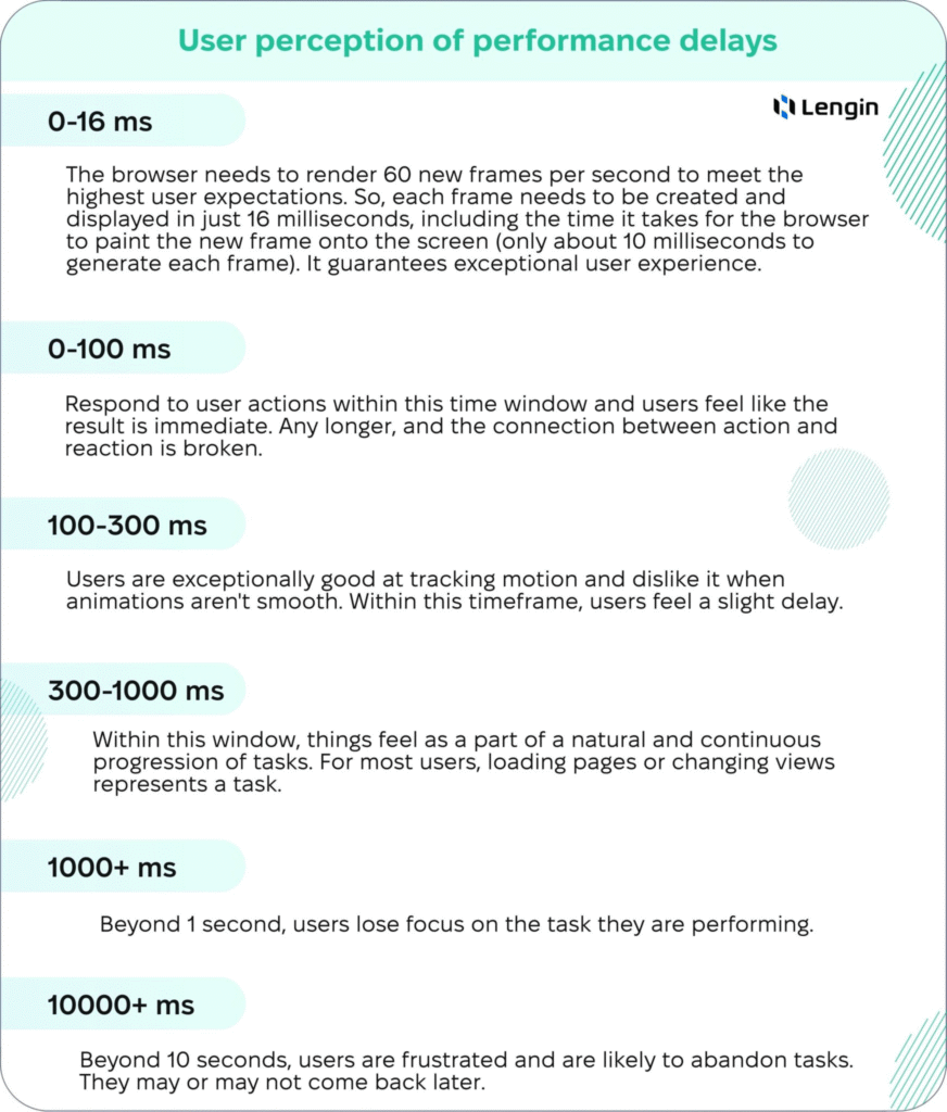 But how much time is exactly needed to make the user leave and never come back? Google has already discovered it with the RIAL method (response, animation, idle, and load – key factors affecting user experience).