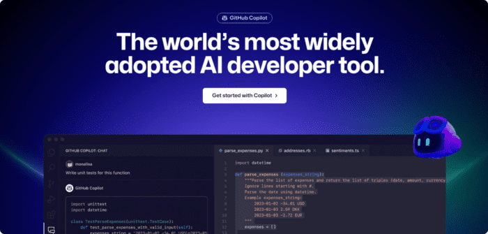 GitHub Copilot – AI copilot for developers that helps to understand the code, suggest improvements, highlight mistakes, and help facilitate development processes.