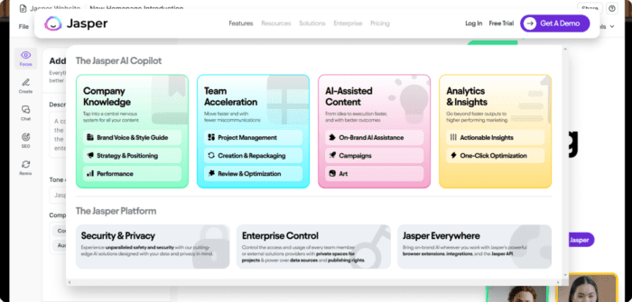 Jasper AI is an AI copilot for enterprise marketing teams. It started as a tool for content generation, but now it includes analytics, project and team management tools, content optimization, art creation, and many more.