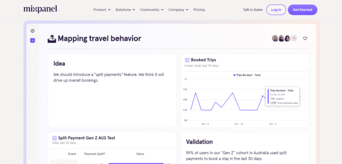 Mixpanel is another AI tool for discovering user experience for further enhancements. It uses customer journey maps as a basis and for idea validation.